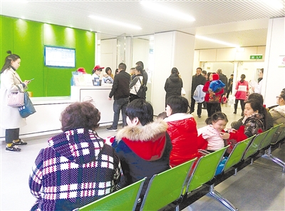 隨后記者乘坐電梯來到兒科就診樓層,全透明的玻璃墻把走廊和就診區(qū)一分為二。具有隔音效果的同時(shí),又保證了就診室內(nèi)的采光。在患者等候區(qū),不少家長(zhǎng)抱著孩子坐在椅子上排隊(duì)等待就診,等候區(qū)內(nèi)播放著輕緩的兒童歌曲,放松了家長(zhǎng)等待時(shí)的焦急心情。