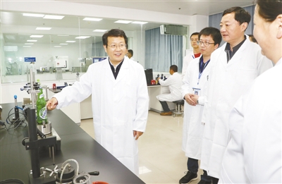 4月22日,市委書記蒿慧杰在國(guó)家肉制品檢測(cè)中心調(diào)研指導(dǎo)。記者 王慶建 攝