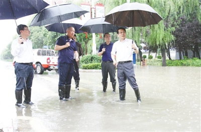 7月22日,市委書記蒿慧杰察看指導(dǎo)市區(qū)積水點(diǎn)排水和防汛工作。本報(bào)記者 王慶建 攝