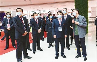 11月1日,市四大班子領(lǐng)導(dǎo)帶領(lǐng)市直相關(guān)部門(mén)負(fù)責(zé)同志察看第十八屆中國(guó)(漯河)食品博覽會(huì)展館。本報(bào)記者 王慶建 攝