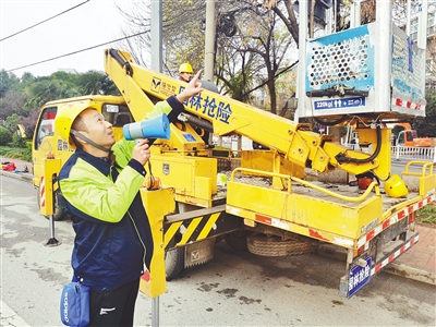 修剪工作經(jīng)常需要用到高空作業(yè)車等大型機(jī)械,為避免造成交通擁堵,王磊和同事總是在人流車流量小時(shí)開始工作。“修剪工作需要早上班、晚下班、深夜再加一趟班。”王磊笑呵呵地說。