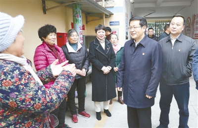 11月25日,市委書記蒿慧杰在二針家屬院小區(qū)調(diào)研新時(shí)代文明實(shí)踐點(diǎn)建設(shè)情況,并與居民親切交談。記者 王慶建 攝