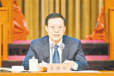 2月10日上午,漯河市第八屆人民代表大會第五次會議閉幕,市委書記秦保強講話。記者 焦海洋 攝