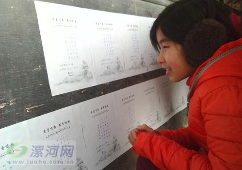 學校從六年級學生書法作品中精選出15幅,張貼在會議室前一個十分簡陋的活動黑板上邊,供全校師生進行觀賞和分享。在課間活動的時候,書法展吸引著學生前來觀看和品賞,給校園增添了迎新年活動的節(jié)日氣氛。