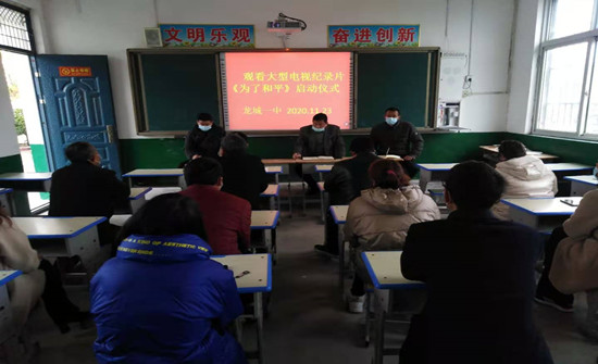 郾城區(qū)龍城一中舉行觀看大型電視紀(jì)錄片《為了和平》啟動(dòng)儀式
