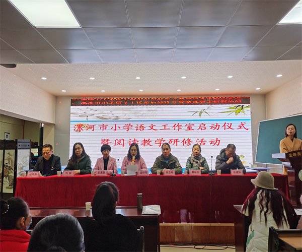 為進(jìn)一步加強(qiáng)漯河市小學(xué)語文名師工作室建設(shè),充分發(fā)揮名師工作室的引領(lǐng)輻射作用,12月2日,漯河市小學(xué)語文工作室啟動儀式暨閱讀教學(xué)研修活動在龍塔街道西南街小學(xué)舉行。漯河市基礎(chǔ)教研室副主任、教研員潘玲珂,各縣區(qū)教研室教研員及部分小學(xué)語文教師參與了工作室啟動儀式暨閱讀教學(xué)研修活動?;顒釉谖餍⌒iL徐偉濤的致辭中拉開帷幕。