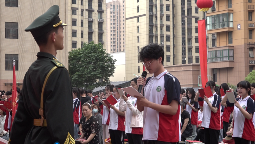 接著,全體學(xué)生手持《憲法》,面向國旗莊嚴宣誓。