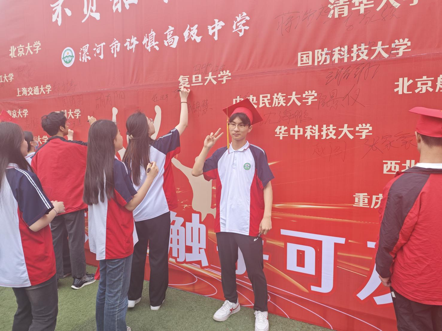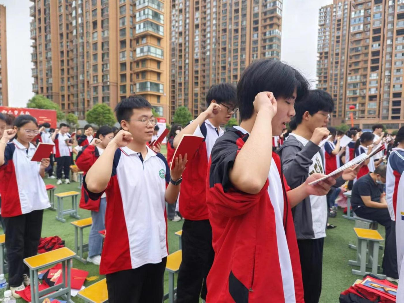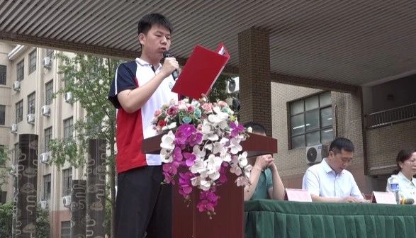 學(xué)生代表上前發(fā)言,他的講話發(fā)自肺腑、擲地有聲,道出了全體同學(xué)的決心和自信。十載寒窗,百日苦練,何人健步登金榜;一腔熱血,萬丈豪情,我輩英才奪桂冠!
