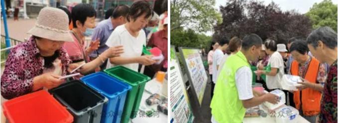 活動現(xiàn)場設(shè)置宣傳展板、講解臺,志愿者發(fā)放環(huán)保宣傳頁、環(huán)保購物袋、環(huán)保圍裙等,向群眾講解生態(tài)環(huán)境保護(hù)、生活垃圾分類、綠色低碳生活等知識。同時,現(xiàn)場開展了垃圾分類投放活動,投放正確的可獲得環(huán)保餐盒、環(huán)保垃圾桶等獎品。