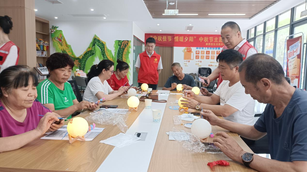 隨后,志愿者耐心細(xì)致地講解了月球燈的制作步驟和技巧。老人們聽得津津有味,紛紛拿起材料包,在志愿者的協(xié)助下,小心翼翼地組裝、繪畫,每一個細(xì)節(jié)都凝聚著他們的心血與對節(jié)日的熱愛。不久,一盞盞獨一無二、充滿創(chuàng)意的月球燈在老人們的手中誕生,它們或圓潤皎潔,或色彩斑斕,宛如夜空中最亮的星,照亮了老人們的心房。