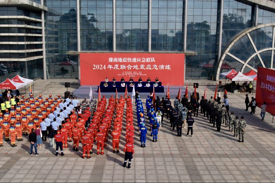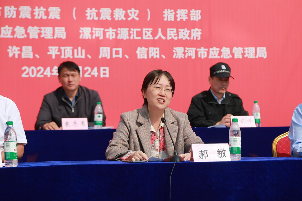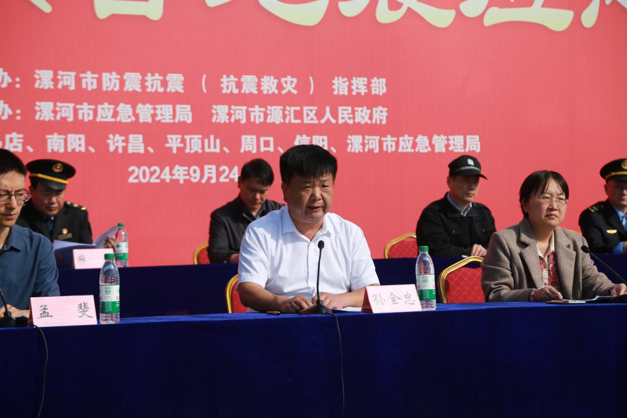 9月24日,豫南地震快速應(yīng)急聯(lián)隊(duì)2024年度聯(lián)合地震應(yīng)急演練在漯河市源匯區(qū)舉行。此次演練由漯河市防震抗震(抗震救災(zāi))指揮部主辦,漯河市應(yīng)急管理局、源匯區(qū)人民政府承辦。平頂山市、許昌市、漯河市、南陽市、周口市、駐馬店市、信陽市應(yīng)急管理局一同參加演練。河南省地震局黨組成員、副局長郝敏,漯河市政府副秘書長王振甫,漯河市應(yīng)急管理局黨委書記、局長孫全忠, 源匯區(qū)委副書記、區(qū)政府區(qū)長史一鳴等出席活動。