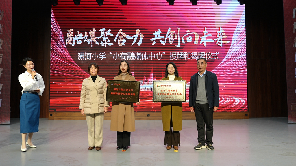 儀式上,河南日報社漯河分社、河南廣播電視臺、漯河日報、漯河廣播電視臺、漯河教育電視臺五家媒體單位向“小荷融媒體中心”授牌,標(biāo)志著該中心正式成為媒體單位的青少年融媒體實踐基地。