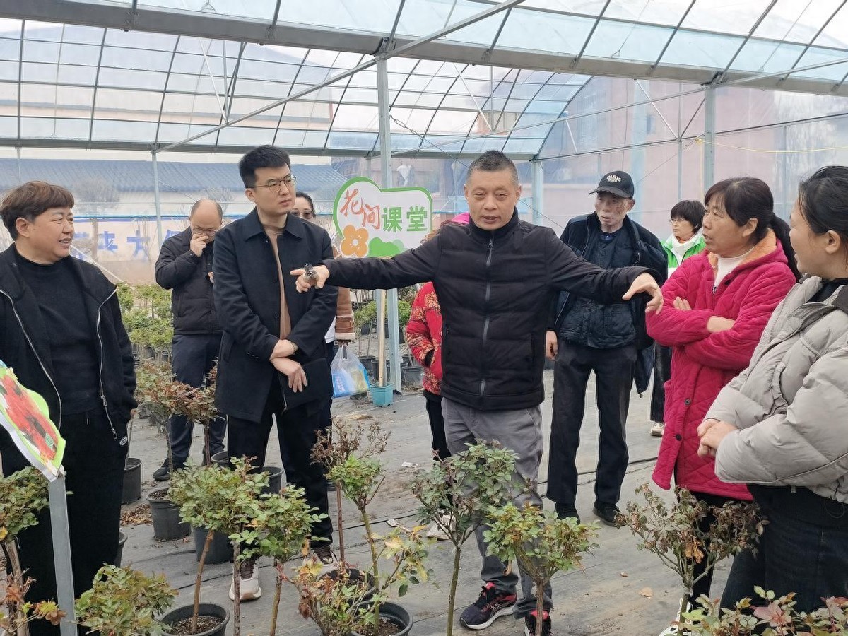 雙輪驅(qū)動(dòng)破解產(chǎn)業(yè)困局。作為傳統(tǒng)月季專業(yè)村,潘牛村曾因品種單一陷入“花開(kāi)時(shí)節(jié)卻愁銷”的困境。為此,趙基元依托園林專業(yè)優(yōu)勢(shì),并聯(lián)合村“兩委”開(kāi)展“把脈式”調(diào)研,梳理出成本、技術(shù)、市場(chǎng)三大癥結(jié)。在多方走訪,會(huì)商研判后,提出通過(guò)構(gòu)建“月季提質(zhì)+草花增量”雙軌戰(zhàn)略,在保持精品月季種植優(yōu)勢(shì)的同時(shí),引入孔雀草、百日草等觀賞期長(zhǎng)草花,形成“長(zhǎng)短期互補(bǔ)、高低端搭配”的種植格局。同時(shí),依靠園林技術(shù)團(tuán)隊(duì)創(chuàng)新研發(fā)的草花種苗自育體系,使每畝用苗成本從1000元壓縮至600元,配合科學(xué)輪作模式,新品種培育試驗(yàn)田可實(shí)現(xiàn)“四季有花出圃”。