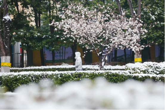 紅道蜿蜒櫻園里,雪映繁花待春綺。宋陟睿 攝(李鑫燕 宋陟睿)