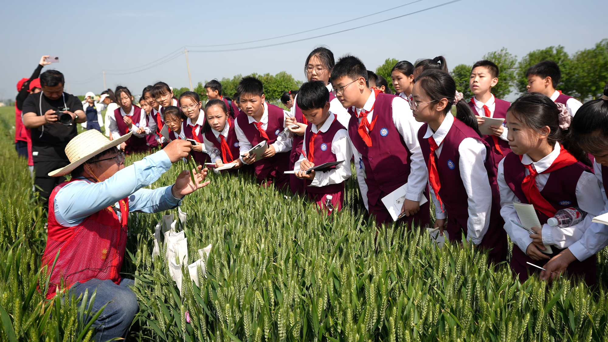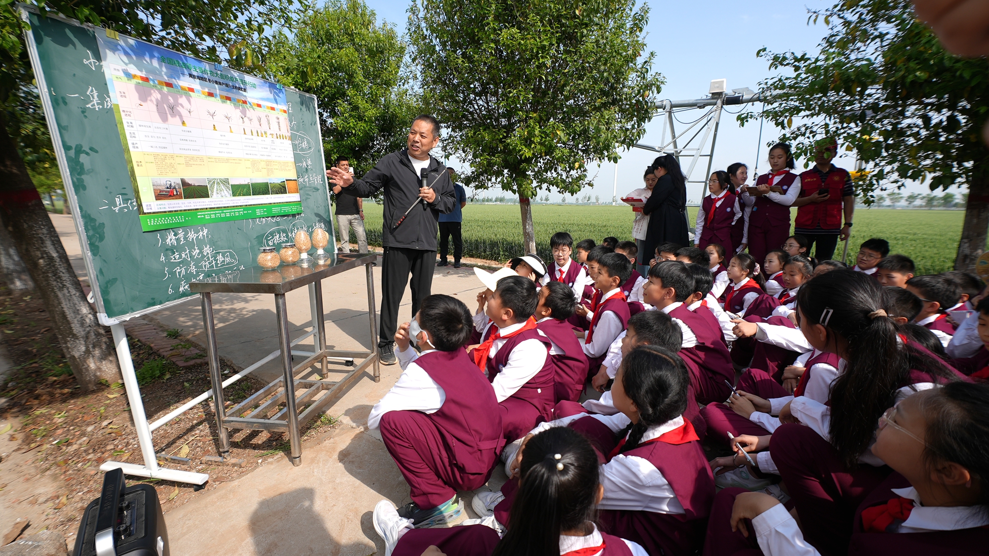 儀式環(huán)節(jié)結束后,專家為同學們帶來了精彩講解,深入淺出地科普了小麥的一生、小麥的雜交及品種選育、人工影響天氣作業(yè)、病蟲害物聯(lián)網(wǎng)等知識,揭開現(xiàn)代農(nóng)業(yè)神秘面紗。同學們認真聆聽,不時記錄下重點內(nèi)容。