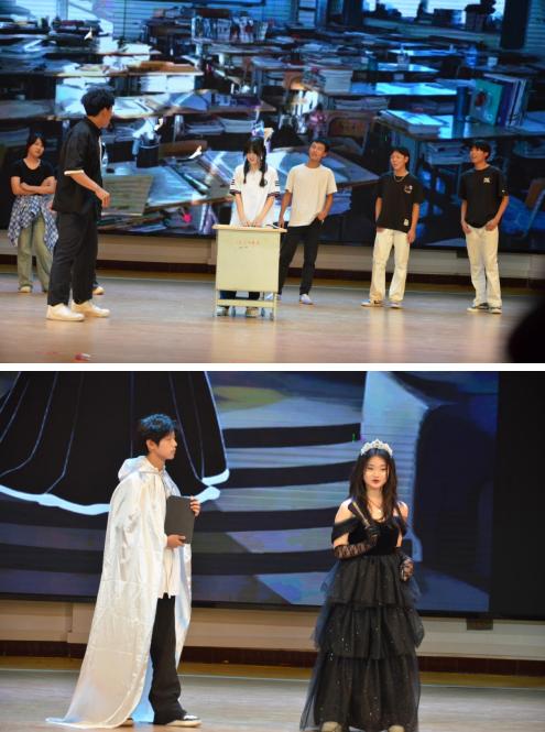 活動(dòng)現(xiàn)場(chǎng),演出學(xué)生憑借扎實(shí)的臺(tái)詞功底、細(xì)膩的肢體語(yǔ)言與極具感染力的情緒表達(dá),將角色刻畫(huà)得入木三分。幕后團(tuán)隊(duì)同樣“星光閃耀”,從手繪道具、動(dòng)態(tài)背景投影到音效配合,每個(gè)環(huán)節(jié)都彰顯著同學(xué)們的匠心巧思?,F(xiàn)場(chǎng)的評(píng)委老師從劇本創(chuàng)意、表演技巧、舞臺(tái)效果等多個(gè)維度對(duì)各劇目進(jìn)行了綜合評(píng)分,。最后夢(mèng)想合唱團(tuán)的合唱“世界贈(zèng)與我”與說(shuō)文解字社團(tuán)的“字圣故里美少年 說(shuō)文解字話傳承”環(huán)節(jié),更是點(diǎn)燃全場(chǎng)熱情將全場(chǎng)氣氛推入高潮,將藝術(shù)欣賞與音樂(lè)文學(xué)深度交融。