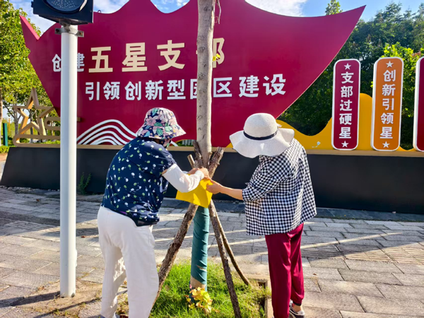 區(qū)園林職工懸掛粘蟲(chóng)板防治白粉虱