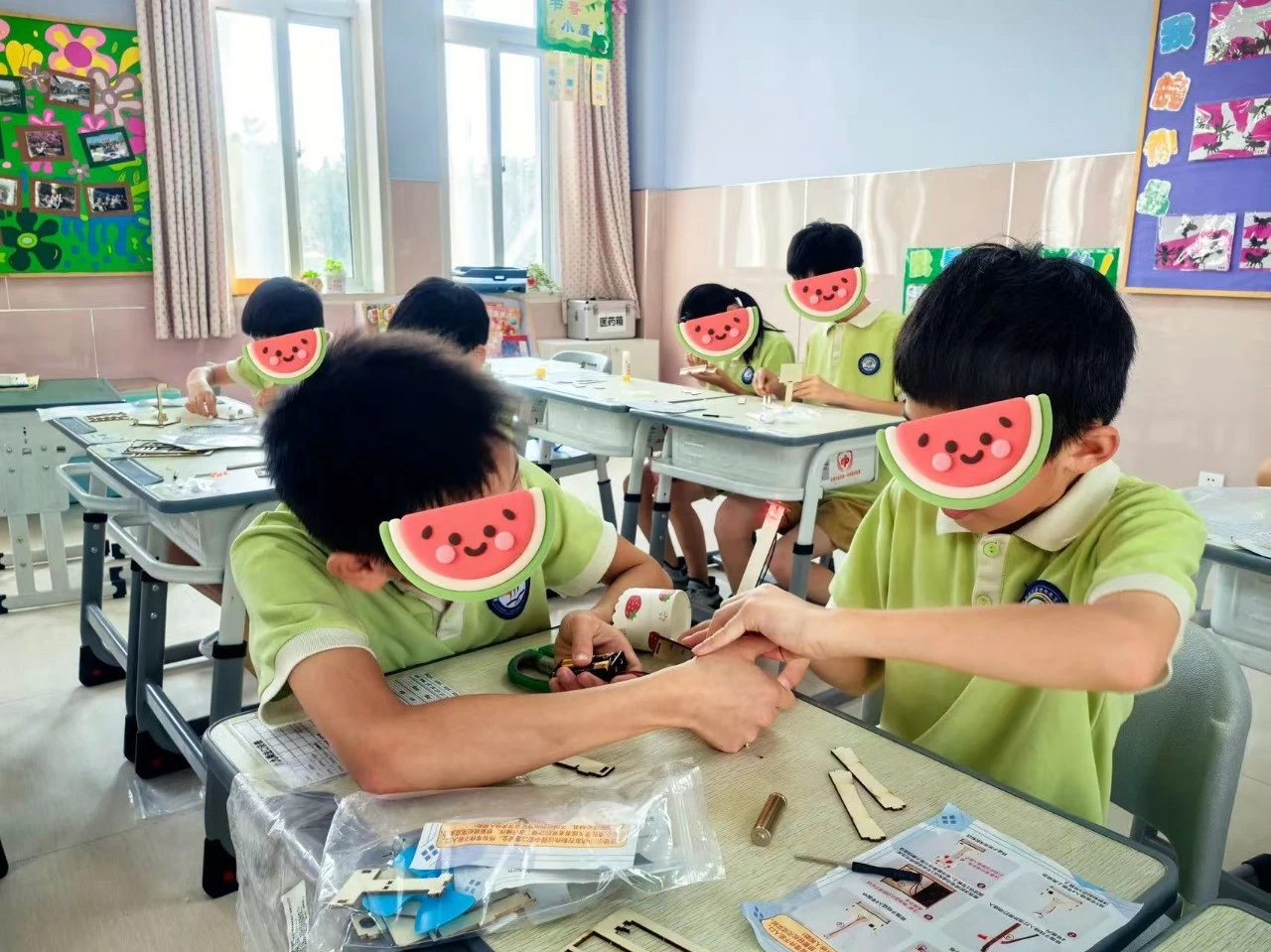午后,孩子們又投入到了科學(xué)小制作的活動中。桌上擺滿了各種材料和工具,從簡單的紙張、吸管到復(fù)雜的電路元件,應(yīng)有盡有。指導(dǎo)老師耐心地為孩子們講解每個項目的原理與制作方法,鼓勵他們發(fā)揮想象力,動手創(chuàng)造出屬于自己的“科學(xué)作品”。在老師的指導(dǎo)下,孩子們或獨自思考,或三五成群地討論方案。有的制作了簡易的風(fēng)力發(fā)電機(jī),利用風(fēng)力驅(qū)動小燈泡發(fā)光;有的則制作了有趣的磁懸浮列車模型,通過磁鐵的相互作用展示科學(xué)的魅力。每一件作品都凝聚著孩子們的智慧與汗水,是他們探索未知世界的寶貴成果。(作者:康冰倩)
