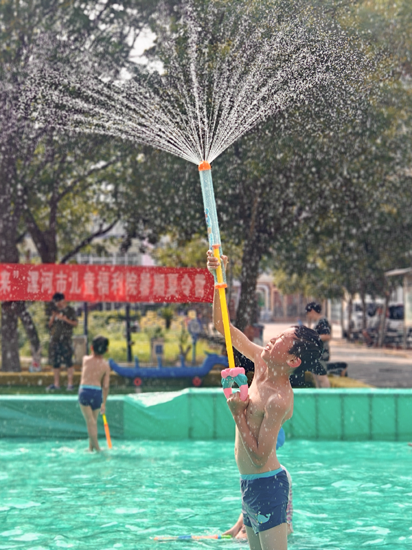 隨著夏日的午后陽光愈發(fā)熾熱,一場別開生面的“泡沫之夏之水上狂歡”在福利院內(nèi)上演。孩子們身著泳裝,在泡沫的海洋中盡情嬉戲、打鬧,水花四濺、笑聲連連,這場水上狂歡不僅讓孩子們感受到了夏日的清涼與快樂,更讓他們之間的友誼得到了升華。