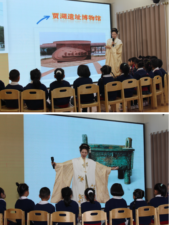 漯河市藝術(shù)幼兒園魏偉老師執(zhí)教的教學(xué)活動(dòng)《假如文物會(huì)說話》,以賈湖骨笛、后母戊鼎等文物為線索,通過聆聽八千年骨笛聲音、“文物回家”地圖互動(dòng)等活動(dòng),讓幼兒觸摸文化根脈、增強(qiáng)民族自豪感,踐行“資源強(qiáng)德”路徑。三節(jié)教育活動(dòng)摒棄說教、善用共情,將思政元素與游戲、體驗(yàn)深度融合,盡顯“隨風(fēng)潛入夜,潤(rùn)物細(xì)無聲”的教育智慧。