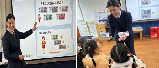通過家長進課堂集體活動幫助孩子們認識錢幣。家長準備了各種面額的紙幣和硬幣,讓孩子們觀察它們的圖案、顏色和數(shù)字,了解不同面額的價值。通過“換錢游戲”和“模擬購物”,孩子們在輕松愉快的氛圍中掌握了基本的錢幣知識。