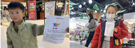 進入超市后,孩子們拿著清單,開始了有趣的尋寶游戲。他們穿梭在貨架之間,認真比對商品信息,學習分類和比較。有的孩子在食品區(qū)挑選健康零食,有的在文具區(qū)為新學期做準備,還有的在蔬菜區(qū)與家長討論自己的選擇。