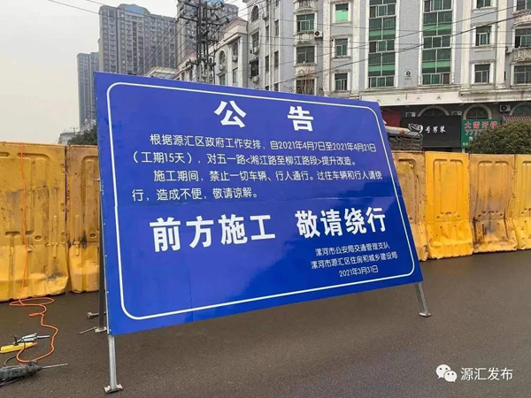 4月7日上午,源匯區(qū)公路養(yǎng)護(hù)中心正式對五一路(湘江路至柳江路段)進(jìn)行道路提升改造,實(shí)行全封閉斷行,施工期間,禁止一切車輛及行人通行。
