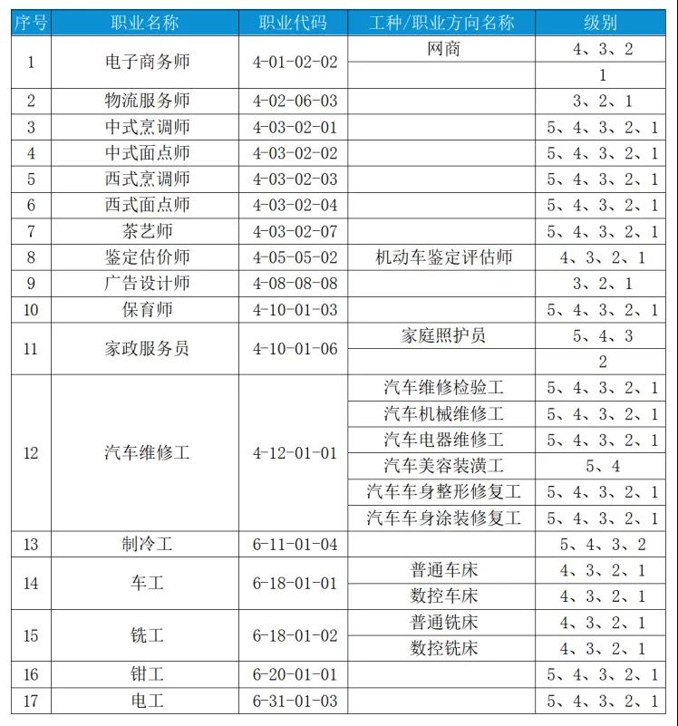 培訓(xùn)評(píng)價(jià)職業(yè)(工種、等級(jí))