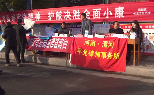 當(dāng)天上午九點多鐘,記者在郾城區(qū)黃河廣場看到,大量的法律宣傳版面和橫幅已經(jīng)擺放和懸掛完畢,來自郾城區(qū)各單位的工作人員在宣傳現(xiàn)場為過往市民發(fā)放法律知識宣傳頁。除此之外,宣傳法制的書畫展和新編法制現(xiàn)代戲《借款協(xié)議》也吸引了廣大市民群眾駐足觀看。