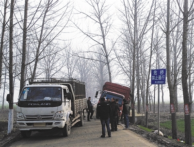一座年久失修的危橋上設置了非常明顯的禁行標志,但是貨車仍從橋上駛過,不禁讓人揪心。這是記者1月8日在何冢路塔河橋上看到的一幕。