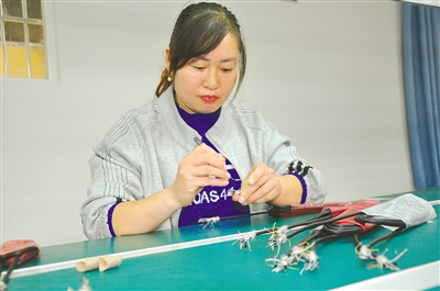 “考慮到村里一些不能外出的勞動(dòng)力無事可做,特別是貧困家庭和低保戶,我們就本著為鄉(xiāng)親們做點(diǎn)事兒的念頭,大著膽子試一試。”電器公司負(fù)責(zé)人、范軍正的妻子柯會(huì)敏說。挑選工人時(shí),電器公司首先考慮家里有富余勞動(dòng)力的貧困家庭和低保家庭。公司吸納的工人中有6名來自村里的貧困家庭,3名來自低保家庭,2名是殘疾人,范海娜就是其中的一員。