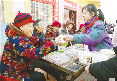 百善孝為先。薛村黨支部書記郭東亮告訴記者,冬至將至,為繼承傳統(tǒng)美德、弘揚孝道文化,他們特意在村里組織了這個活動。此舉受到村民一致歡迎,大家踴躍參加。(記者 楊 光 攝)