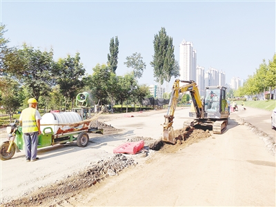 9月7日上午8時(shí)30分,記者在施工現(xiàn)場(chǎng)看到,道路已經(jīng)開挖,濱河路兩側(cè)的擋墻也已建成,工人正在拆除北側(cè)擋墻的腳手架和支撐板,多臺(tái)大型機(jī)械原地待命隨時(shí)準(zhǔn)備作業(yè)。