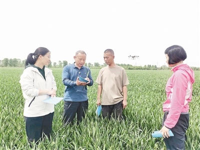 “你的地里發(fā)現(xiàn)部分植株有蚜蟲、條銹病,本周五又有陰雨天氣,要在這兩天抓緊做好小麥赤霉病、條銹病、蚜蟲防治工作。”4月17日上午,在郾城區(qū)龍城鎮(zhèn)后鄭村,市農(nóng)科院春管服務(wù)團(tuán)專家察看了種植大戶趙惠杰的小麥后,現(xiàn)場開出“藥方”。