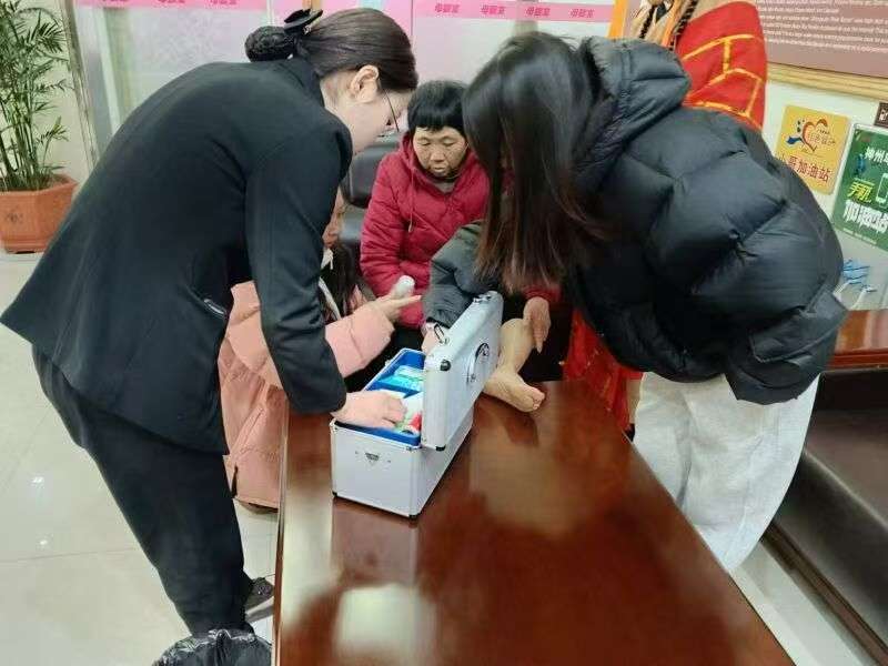 春節(jié)期間,神州鳥(niǎo)園工作人員為游客提供簡(jiǎn)單醫(yī)療服務(wù)的場(chǎng)面很溫馨。