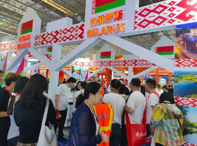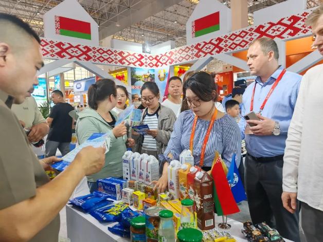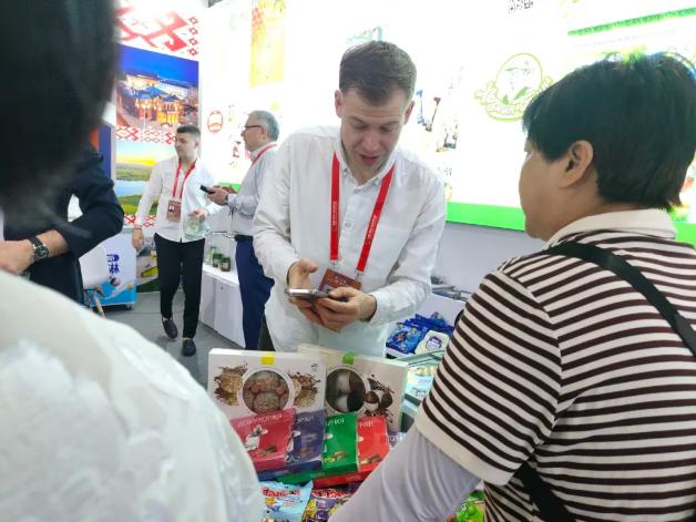 在白俄羅斯的展區(qū)前,記者通過中方的翻譯,在待等了一段不短的時間后,終于采訪了一直忙碌交流的、來自白俄羅斯莫吉廖夫州自由經(jīng)濟區(qū)比霍夫罐頭廠有限責任公司的代表維塔利先生。