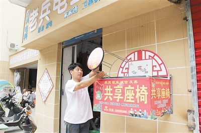 從共享單車到共享電車,再到現(xiàn)在的共享汽車。共享已經(jīng)成為當(dāng)今一個比較熱門的詞語。近日,在市區(qū)湘江路一小家電維修店門前,有一處免費的“共享座椅”吸引了不少人的注意。