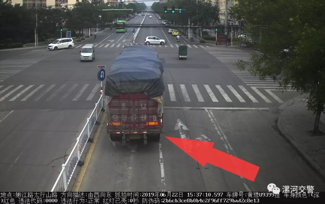 違章及地點(diǎn):嫩江路太行山路 不按導(dǎo)向行駛