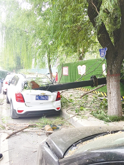 “車輛正在作業(yè)的時候傾覆了。”工地上的一名工人告訴記者,在吊東西時,吊臂掛到了路邊行道樹的樹枝,然后發(fā)生了傾覆。“我剛才看了看,吊車沒啥事。”這名工人說,由于吊車南側(cè)有沙堆支撐,吊車受損不大。