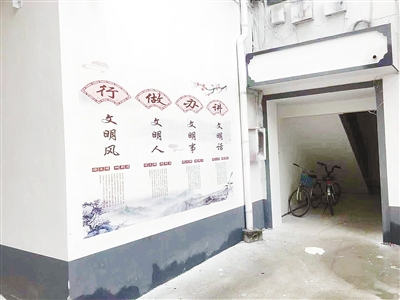 小區(qū)內(nèi)墻面進(jìn)行了粉刷,并寫上了文明標(biāo)語。