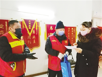 雙匯社區(qū)退伍軍人劉擁軍今年已經(jīng)65歲,仍投身防疫一線。1月25日以來,他進社區(qū)入戶摸排、做群眾思想工作,在網(wǎng)格內(nèi)宣傳防疫知識、發(fā)放宣傳頁、發(fā)放消毒用品等,并主動開著自己的車,每天用小喇叭宣傳防疫知識。