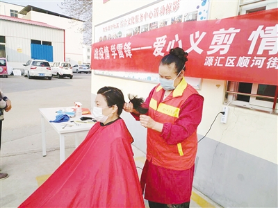 (記者 吳艷敏 實(shí)習(xí)生 劉凈旖)“大姐,你對發(fā)型有啥要求?想咋剪?”“沒啥要求,剪短點(diǎn)兒就行了。”近日,在源匯區(qū)順河街街道戲樓后街社區(qū),志愿者祝玉霞正在為居民理發(fā)。