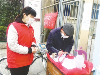 付明云說到做到。131號院有兩位從外地回來的居民,需要居家隔離,付明云在執(zhí)勤之余,承擔(dān)起為他們采購物品、清理垃圾、指導(dǎo)他們自我檢測身體、疏導(dǎo)情緒的工作。