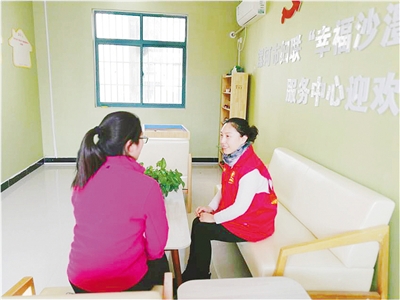 諶玉曉(右)為求助者做心理疏導(dǎo)。