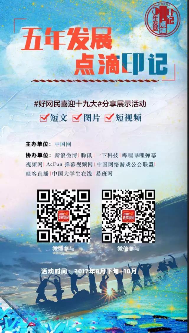 從9月21日起,我們聯(lián)合多家媒體及平臺,應(yīng)廣大網(wǎng)民要求,共同發(fā)起“五年發(fā)展.點(diǎn)滴印記”大型分享展示活動?;顒訉⒊掷m(xù)至黨的十九大召開。