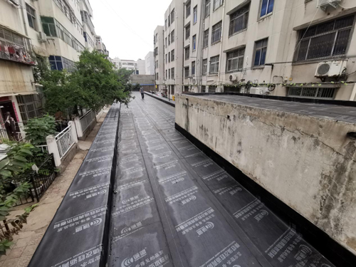 ▲市住建局分包“三無(wú)樓院”治理實(shí)景。(非機(jī)動(dòng)車(chē)庫(kù)屋頂防水)