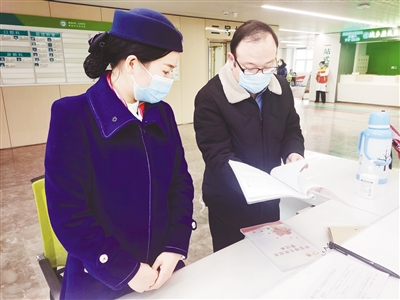 張曉東(右)察看志愿服務(wù)登記資料。