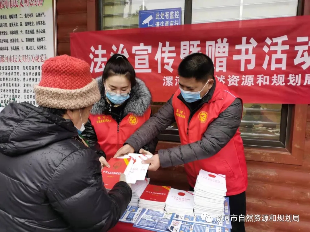 2022年1月26日上午,漯河市自然資源和規(guī)劃局在黃河廣場開展法治宣傳暨贈書活動。