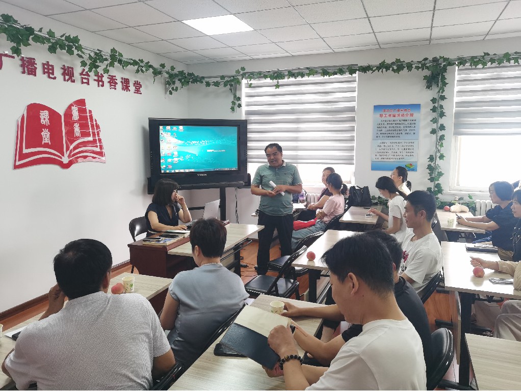 品味書香世界,閱讀智慧人生。6月25日下午,我臺(tái)第二期讀書交流活動(dòng)在職工圖書室舉辦,本期交流活動(dòng)由工會(huì)副主席趙學(xué)民主持,臺(tái)機(jī)關(guān)第三黨支部宣傳委員、電視經(jīng)濟(jì)中心尚麗同志領(lǐng)學(xué)分享,臺(tái)黨組成員、副臺(tái)長(zhǎng)薛宏甫及30余名職工代表參加。