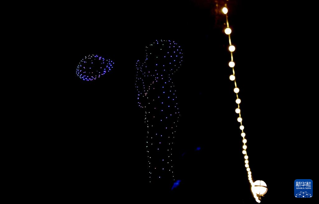 2024年1月1日凌晨,在英國倫敦舉行的新年慶祝活動上,無人機組成的圖案出現(xiàn)在市中心上空。